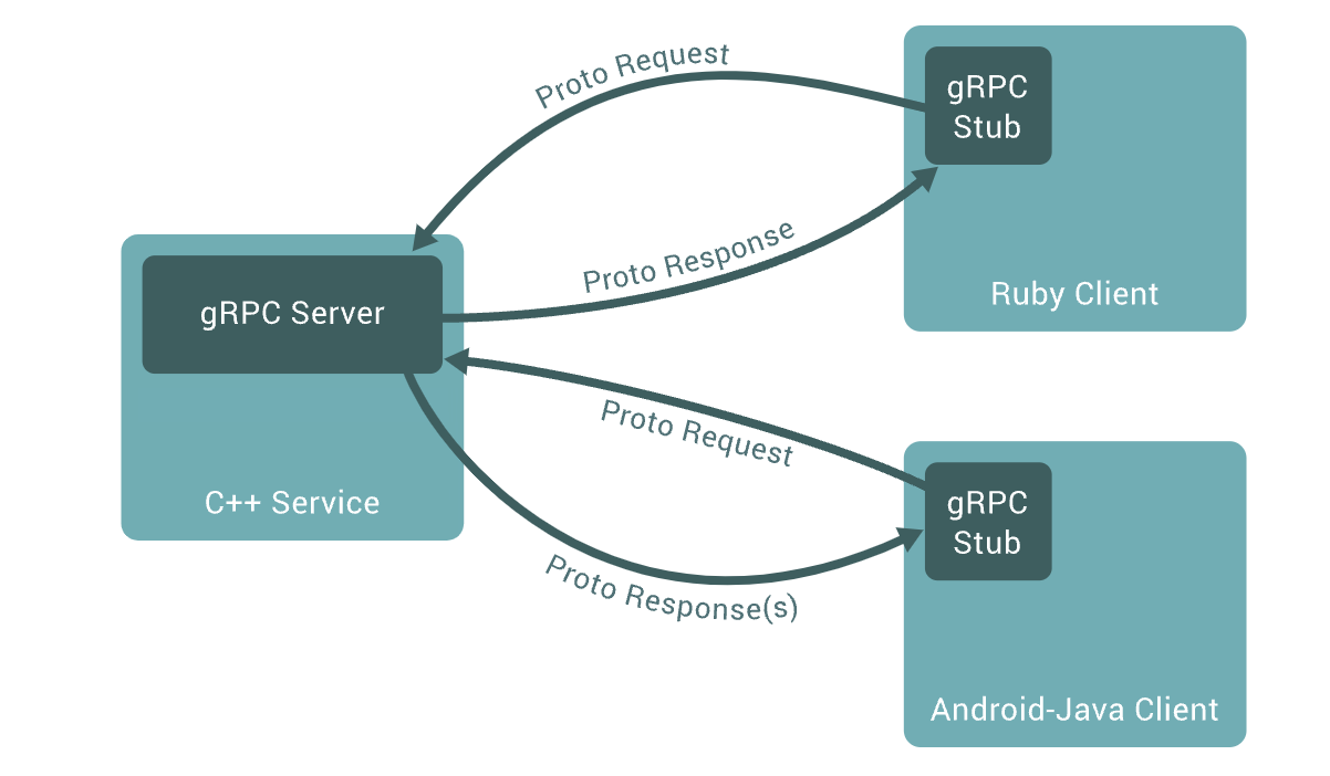 gRPC 客户端和服务端可以在各种环境中运行和相互通信 – 从 Google 内部的服务器到你自己的桌面 – 并且可以使用 gRPC 支持的任何语言编写。因此,你可以轻松地用 Java 创建 gRPC 服务端,使用 Go、Python 或 Ruby 创建客户端。此外,最新的 Google API 将包含 gRPC 版本的接口,使你轻松地将 Google 功能构建到你的应用程序中。