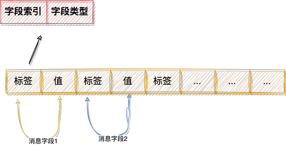 实际上,这个 message 编译后的字节内容大概像下面这样: