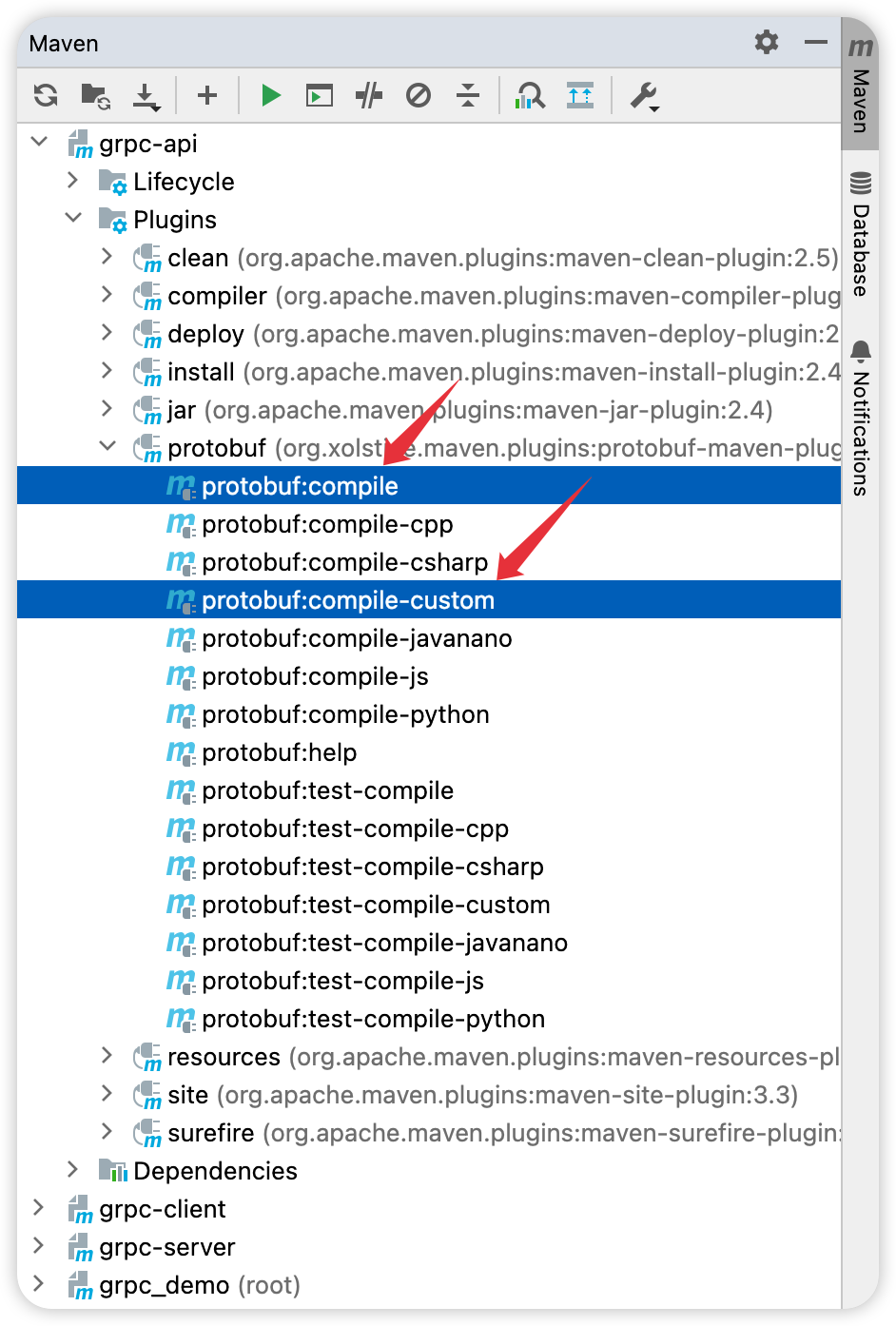 默认情况下,gRPC 使用 Protocol Buffers,这是 Google 提供的一个成熟的开源的跨平台的序列化数据结构的协议,我们编写对应的 proto 文件,通过上面这个插件可以将我们编写的 proto 文件自动转为对应的 Java 类。