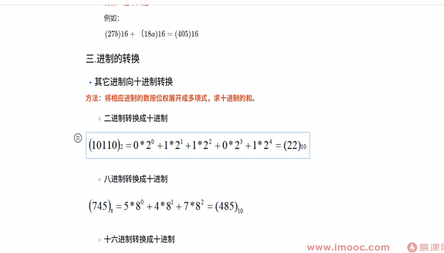 比如二进制事10110转十进制就倒过来01101分别乘以2的n次方然后相加