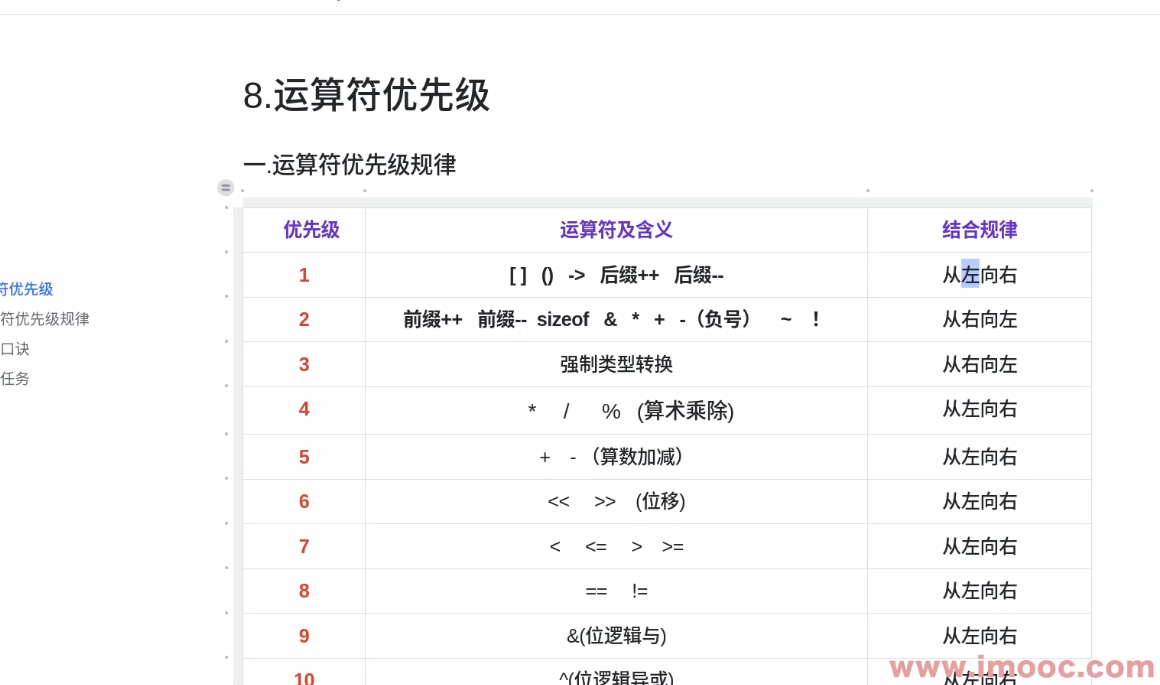 2 前缀++ 前缀-- sizeof & * + -(负号) ~ ! 从右向左