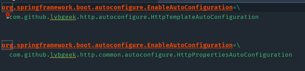 眼尖的朋友应该发现了,同名的配置内容是通过追加的方式,但仅仅追加,其实有时候还满足不了要求,比如spring.factories文件,他需要达到的效果应该是如下图