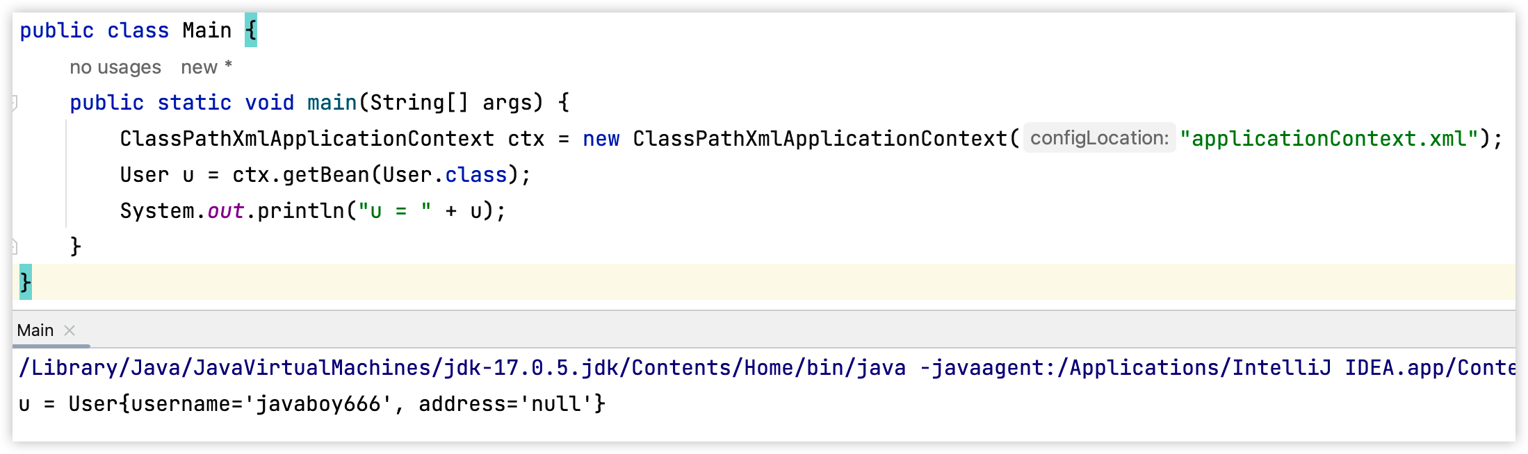 这里的 ^username 是我自定义的一个特殊的占位符,这个占位符表示 javaboy,我希望最终从 Spring 容器中拿到的 User Bean 的 username 属性值是 javaboy。
