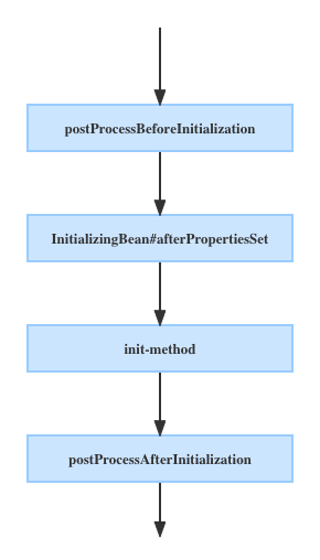 InitializingBean#afterPropertiesSet和init-method方法之前被触发。 - postProcessAfterInitialization:这个方法在