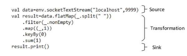 构成:一个Flink应用程序由3部分构成,分别为Source、Transformation和Sink。