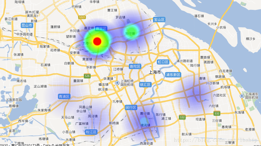 以排名第一的青客为例,,青客目前在出租的房源大概有8600多间,下图是利用百度地图API生成的热力图,具体分布如下: