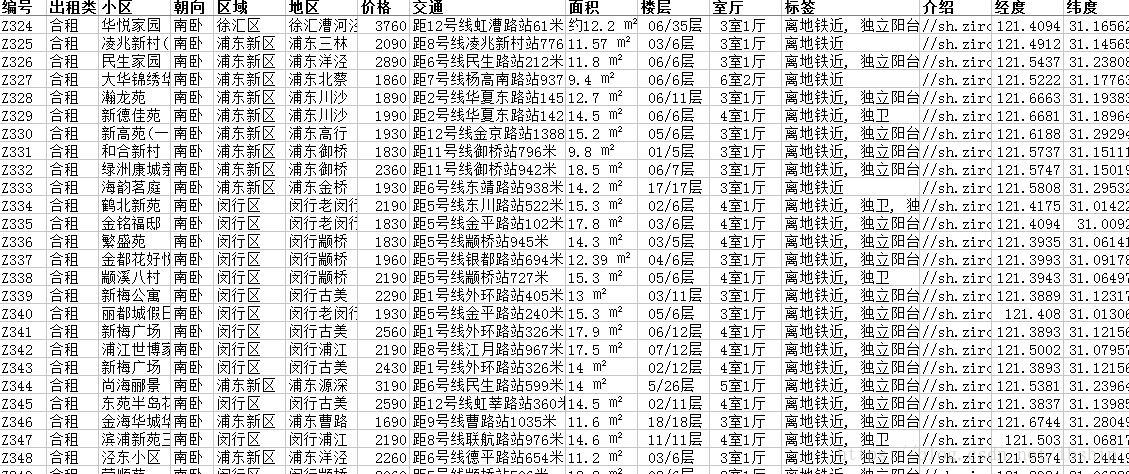 pool.join()采集下来之后,利用高德地图API获取经纬度,稍微整理之后,是这样的: