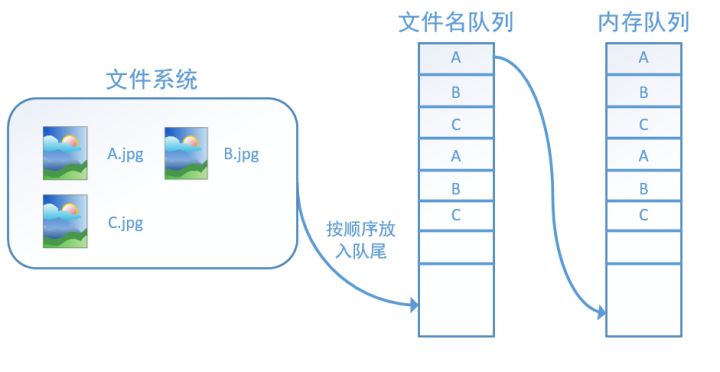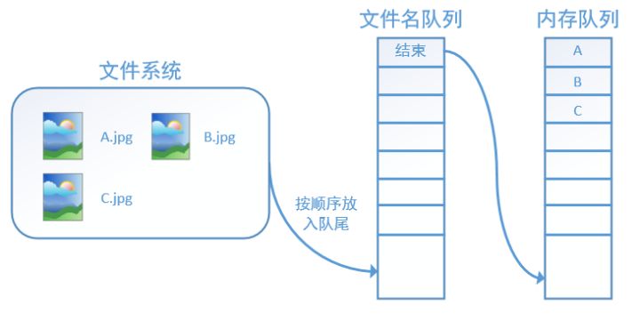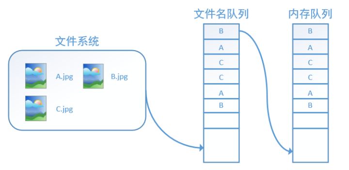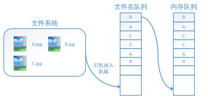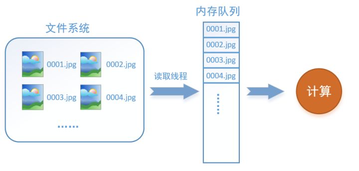 读取线程源源不断地将文件系统中的图片读入到一个内存的队列中,而负责计算的是另一个线程,计算需要数据时,直接从内存队列中取就可以了。这样就可以解决GPU因为IO而空闲的问题!