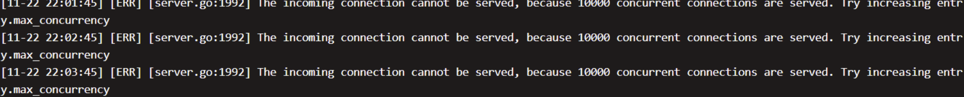 在网关配置文件中,默认有最大并发连接数限制,默认最大 10000。