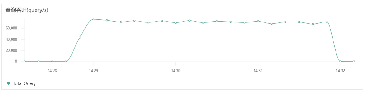 我们先看看不做限制的时候,测试环境的读取速度,7w qps 。
