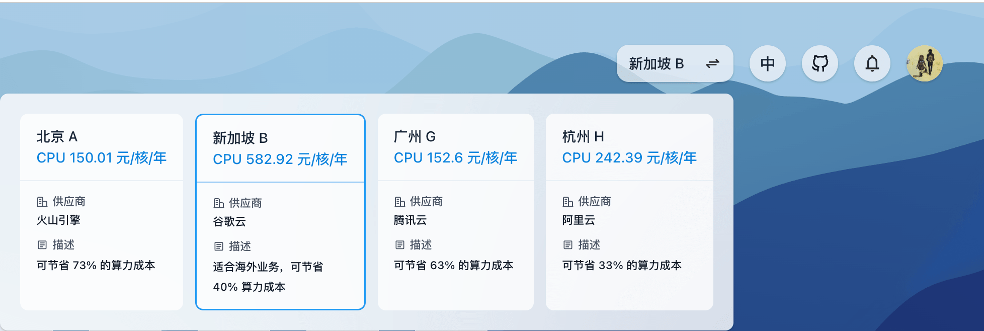 多区域选择:在 Sealos 上有更多的可用区选择,当前有杭州、北京、广州、新加坡区域可用,以满足不同业务的需要,在一个 Sealos 账户下充值,可跨多个区域使用。