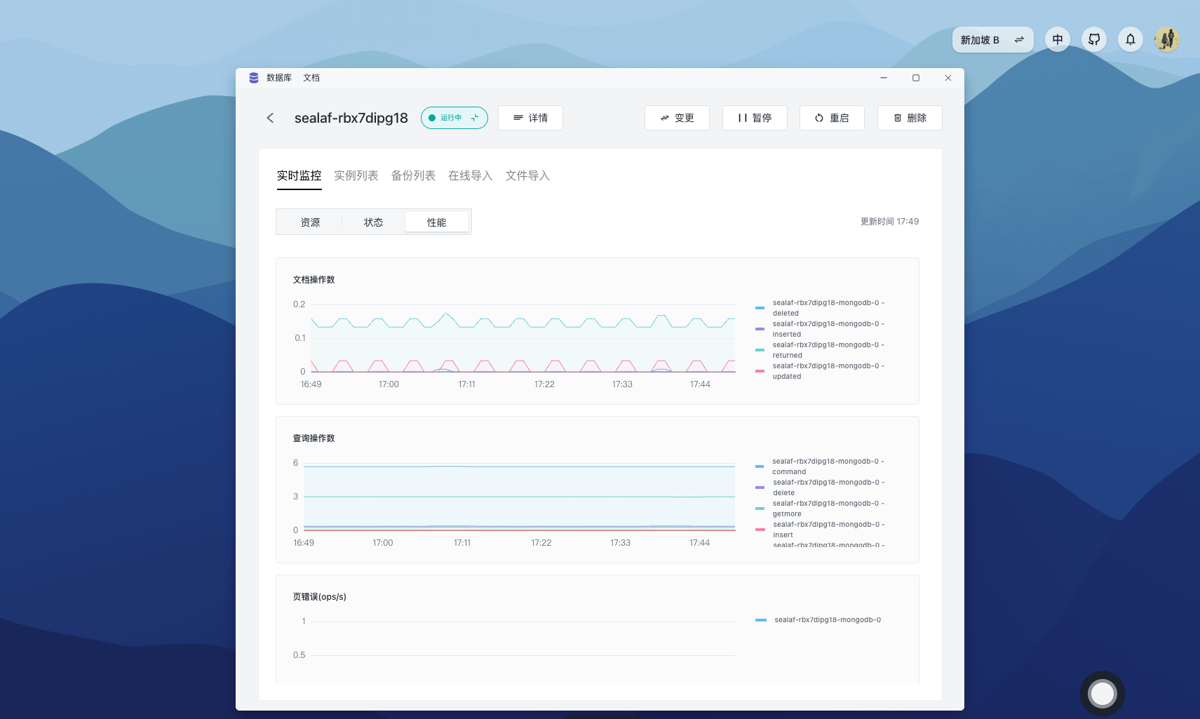 管理更灵活:以前用户无法单独管理 Laf 创建的云数据库,比如备份、日志、观测、导入导出等操作,现在 Sealos 云开发上创建的数据库,可以通过 Sealos 数据库管理应用直接管理和监控。