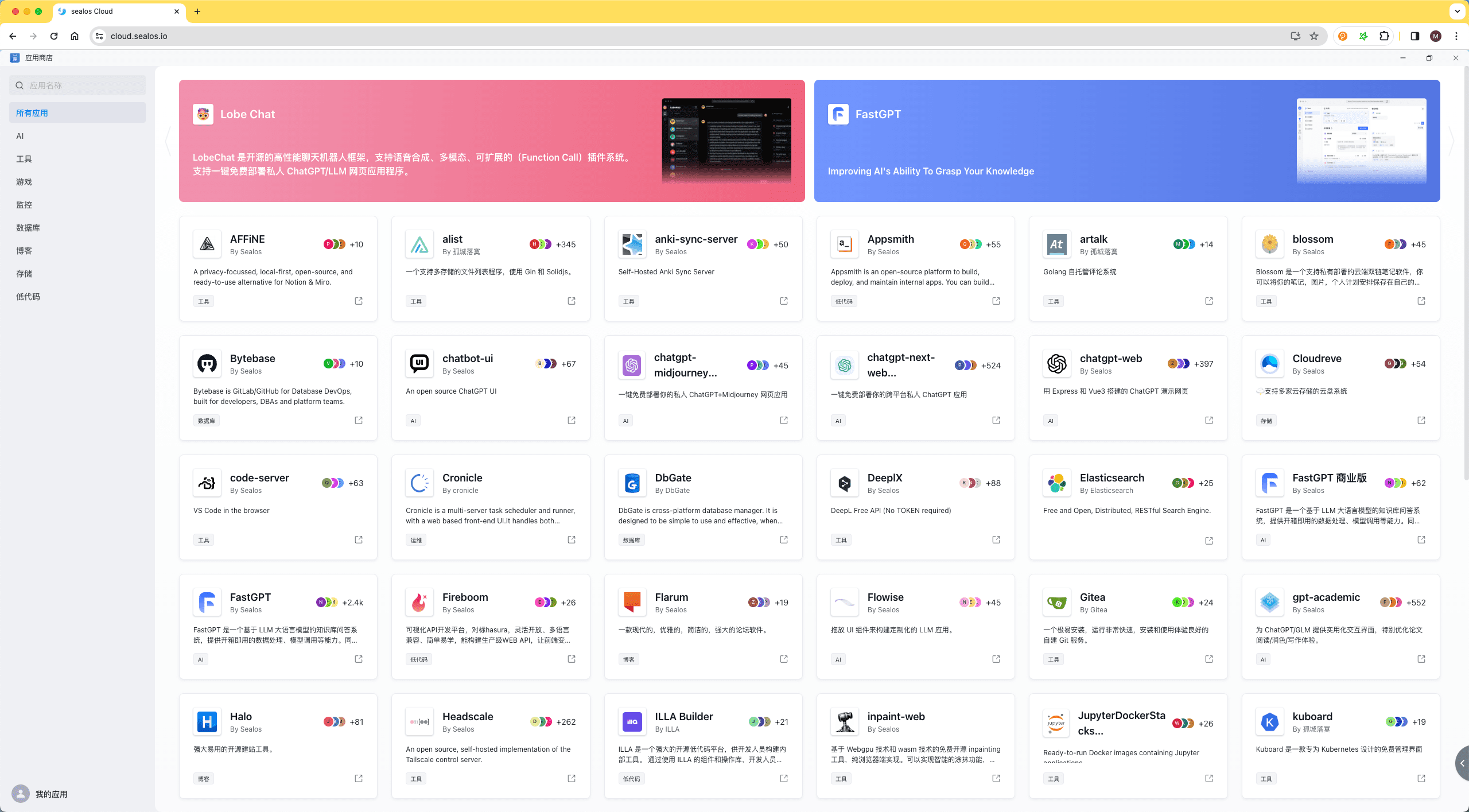 可联动丰富应用生态:Sealos 应用市场中有丰富的应用,这些应用都可一键部署、开箱即用!大家可以在云函数中调用这些应用提供的能力,结合各种应用联动,一站式满足你的业务!