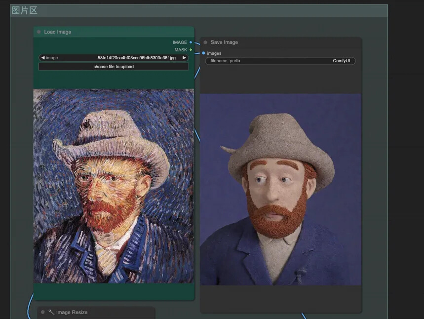 如您希望自定义更多图片可以查看后面高阶教程,为了让您更直观的感受 ComfyUI 强大的绘图能力,我们提供了预置的工作流文件+内置大模型+Lora模型,让您基于函数计算部署 ComfyUI 快速体验**“黏土风格”滤镜**。