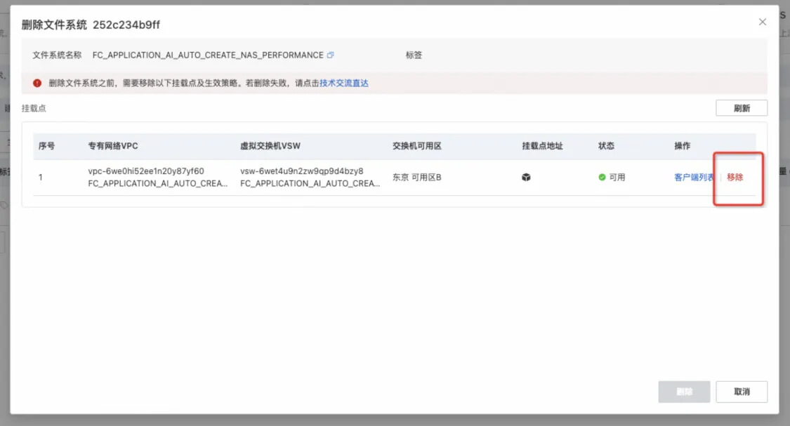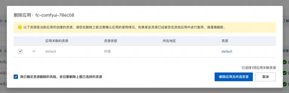 您部署 ComfyUI 会使用函数计算 FC 产品,您创建模型管理器使用了 文件存储 NAS 产品。如果您后续不再使用 Stable Diffusion 可以删除以下两个部分,函数计算不调用不会计费,文件存储 NAS 只要有模型存储即会付费,因此请您注意删除相关资源。