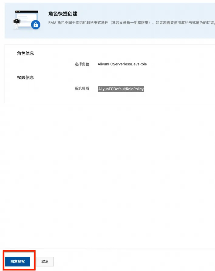 如果您是首次创建可能需要进行角色名授权,点击 前往授权 - 同意授权,如果没有跳出提示请忽略