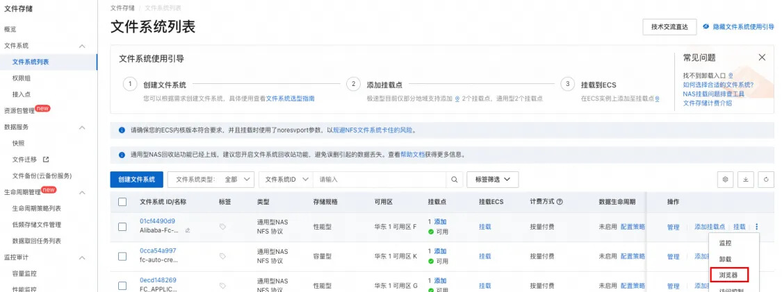 借助 文件存储 NAS 的文件浏览器功能,您可以方便地进行云上文件管理