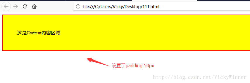 这是我们设置padding 50px的效果,我们可以充分感觉padding的效果,就像给content和border之间填充了透明物将他们间隔。