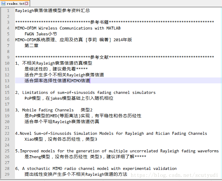 毕设做的无线信道常见模型仿真,收集了一些入门资料。这里把Rayleigh衰落信道的资料发出来,希望能帮到感兴趣的同学。主要包括 Rayleigh衰落信道特点;常见信道模型Clarke模型、Jakes模型和Zheng模型;本人搜集的参考资料和最终的程序。