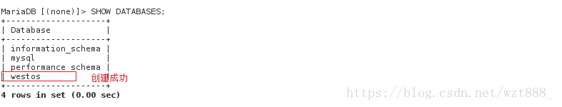 <2>SHOW DATABASES; #查看westos是否成功创建