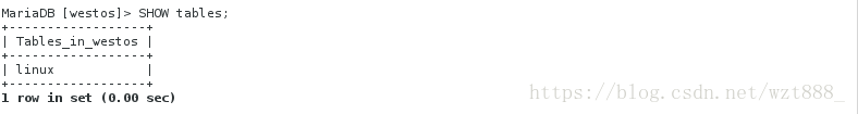 <4>SHOW TABLES; #查看westos中的表格