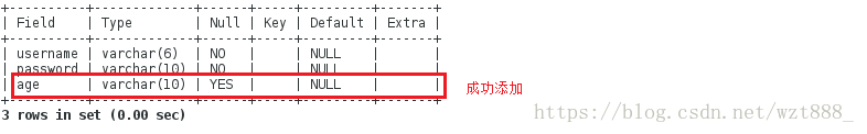 <3>ALTER TABLE messages ADD age varchar(10); #在表格中添加age