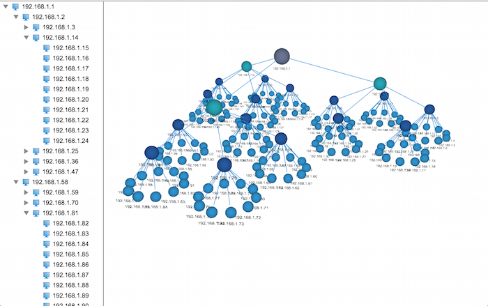 恩,有模有样的了,在文章的开头,我们可以看到每一层的节点都有不同的颜色及大小,这些都是比较简单,在这里我就不做深入的讲解,具体的代码实现如下: