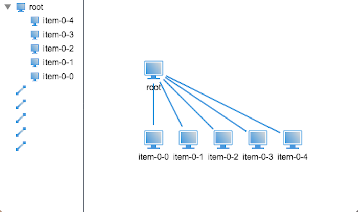 我现在先创建了两层的树状结构,所有的子节点是一字排开,并没有环绕其父亲节点,那么我们该如何去确定这些孩子节点的位置呢?