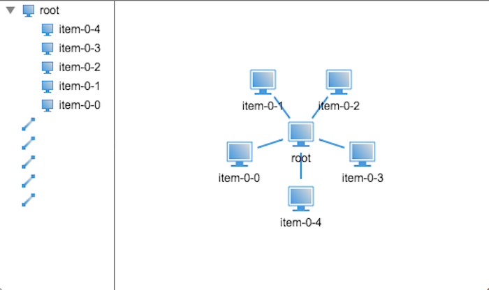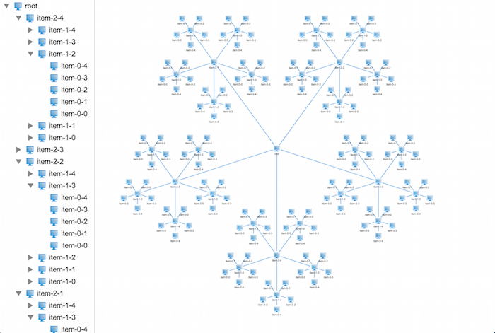 从效果图可以看得出,末端节点的默认半径并不是很理想,布局出来的效果连线都快看不到了,因此我们可以增加末端节点的默认半径来解决布局太密的问题,如将默认半径设置成40的效果图如下: