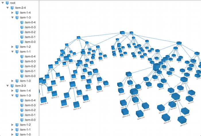 在HT for Web中2D和3D应用都支持树状结构数据的展示,展现效果各异,2D上的树状结构在展现层级关系明显,但是如果数据量大的话,看起来就没那么直观,找到指定的节点比较困难,而3D上的树状结构在展现上配合HT for Web的弹力布局组件会显得比较直观,一眼望去可以把整个树状结构数据看个大概,但是在弹力布局的作用下,其层次结构看得就不是那么清晰了。所以这时候结构清晰的3D树的需求就来了,那么这个3D树具体长成啥样呢,我们来一起目睹下~
