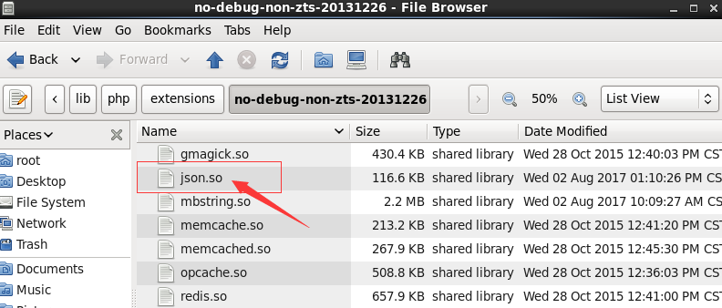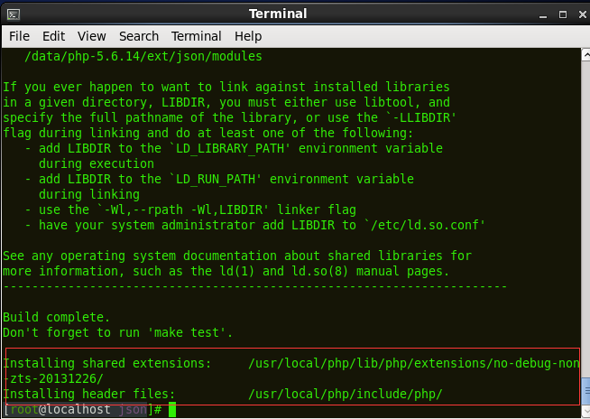这时候json.so就已经在/usr/local/php/lib/php/extensions/no-debug-non-zts-20131226/目录下生成了