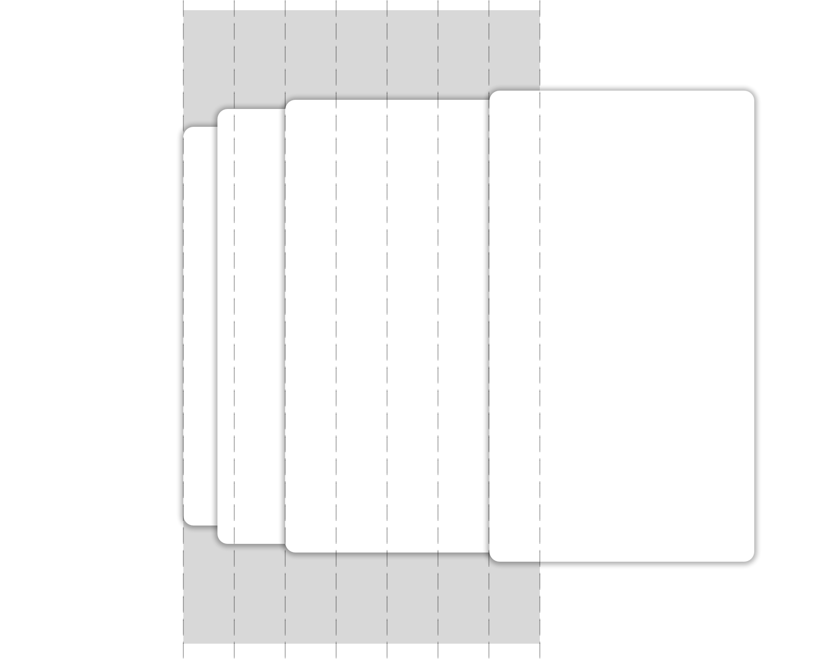 这里可以看到 如果我们以正中间的卡片(设定序号为0)为参照物的话 最右边卡片(序号为1)的位移就是中心卡片宽度的4/5 最左边的卡片(序号为-2)的位移就是中心卡片的宽度的2/5 注意:这两个值的确定对我们非常重要