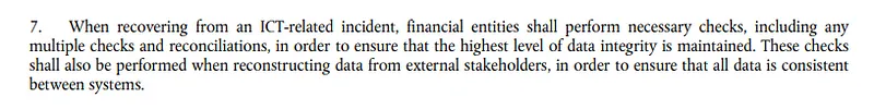 数据同步不当是一个合规问题。数据准确性的需求在许多不同的法规中以隐含或明确的方式提出,但在《DORA》的规定中,一致恢复数据的具体要求被特别提到,特别是在《DORA》中明确提到的这一点。