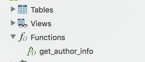 然后在‘Functions’下就可以看到定义好的存储过程了。