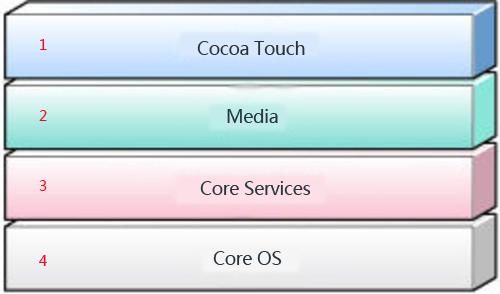 iOS 响应顺序依次为 Touch——Media——Service——Core 架构,当用户只要触摸接触了屏幕之后,系统就会最优先去处理屏幕显示也就是 Touch 这个层级,然后才是媒体(Media),服务(Service)以及 Core 架构。