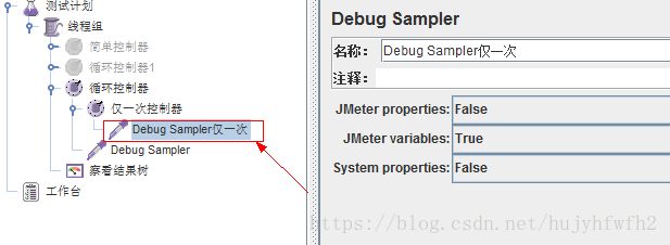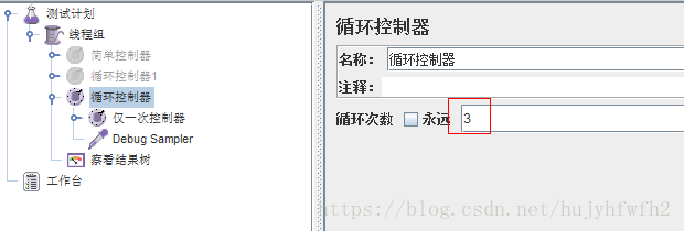 3.3:仅一次控制器下的sampler只运行一次 其他的sampler则受循环控制器控制