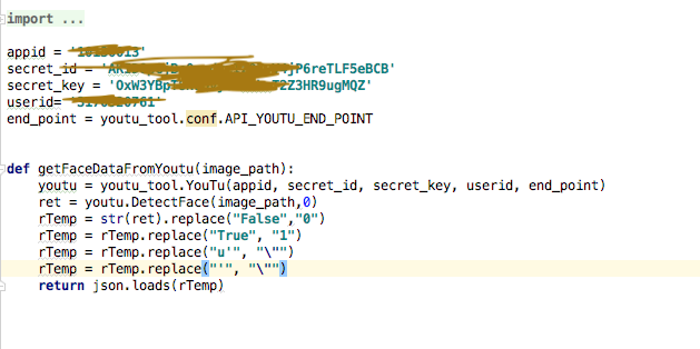 人脸识别的API各大平台都有提供,百度,阿里,优图(腾讯),Face++. 各家的API大体相似,主要区别只是取的点的个数和返回结果的数据结构,都可用。BAT的都有免费可用(如果对QPS没有过高要求的话),Face++ 需要收费1元/次(墙裂怀疑失了智)。综合比较之后选择使用优图。