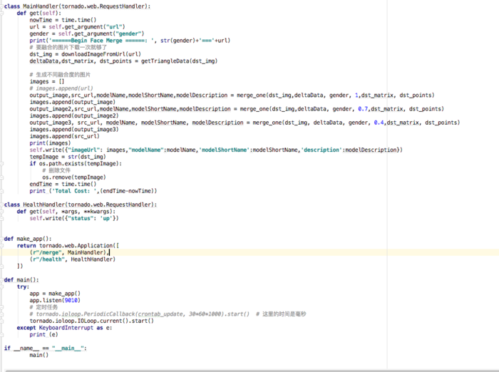 基于性能和表现的考虑,做了一个分离。图片识别和融合的功能全部放在一个Python web项目中,作为一个api,然后在Java web项目中调用这个API,将返回的结果或者错误信息返回到H5页面。