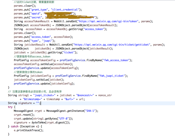 1,配置微信。需要在后台根据jsapi_ticket等信息生成签名