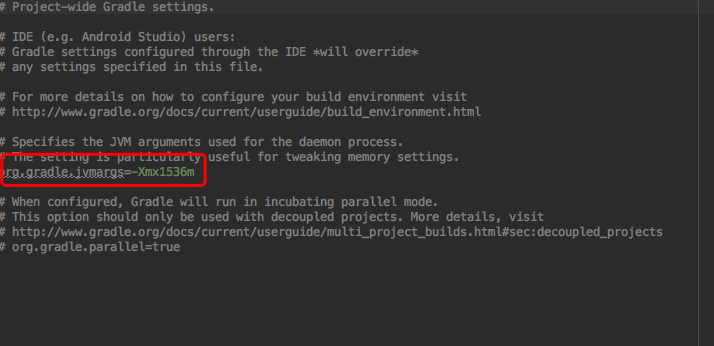 org.gradle.jvmargs = -Xmx2048m //设置Gradle 堆大小 2G