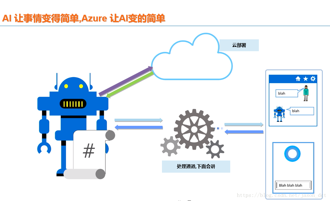 简单的说就是把Bot Service 通过通道,接口和认知服务集成起来。让Bot 能理解自然语言,视频,文本和图像。为用户提供一种很自然的方式与机器一起工作。