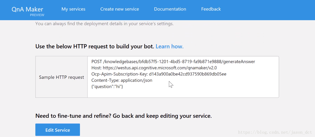 到目前为止,环境、程序、通道和应用已经打通。但是这又怎样,依旧不能交付给最终用户。继续完善,先创建一个QnA 服务。