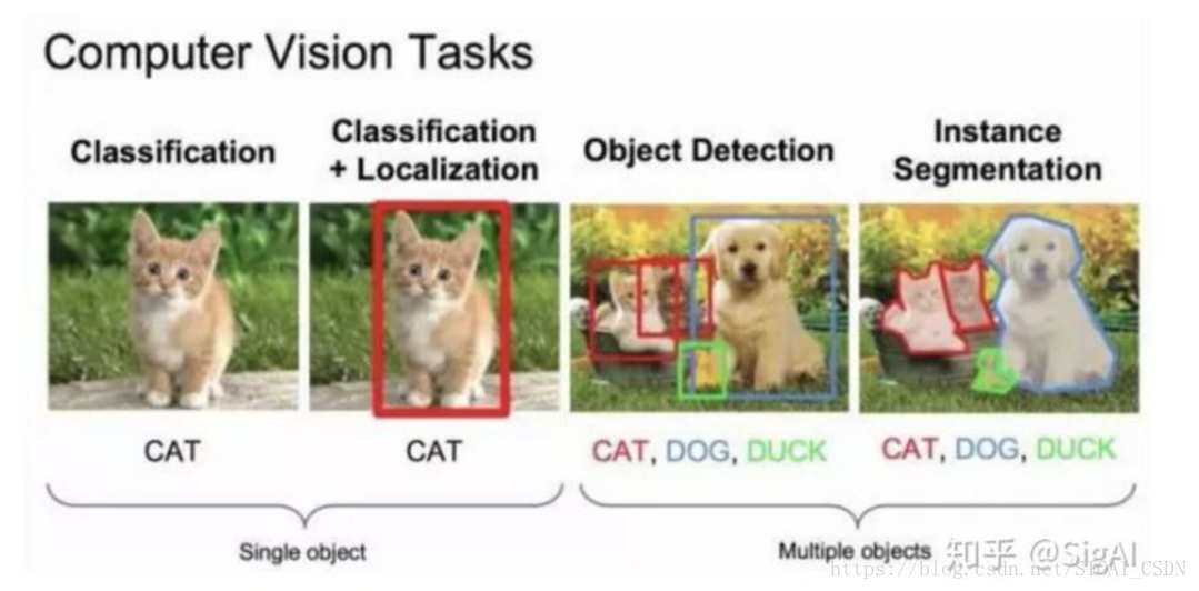分类-Classification:解决“是什么?”的问题,即给定一张图片或一段视频判断里面包含什么类别的目标。