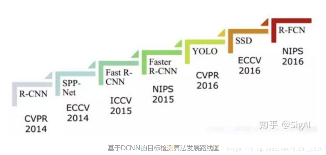 OverFeat有很多创新,但是不能算是目标检测典型的Pipeline,所以我们单独提了出来。下面将从R-CNN开始介绍目前基于DCNN物体检测发展脉络。