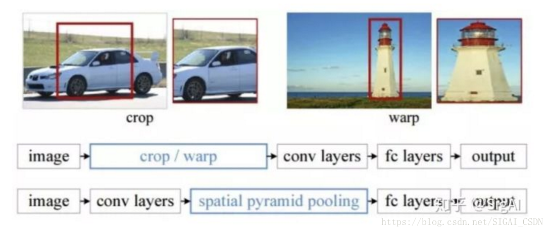 经典的卷积神经网络有一个问题是它只能接受固定大小的输入图像,这是因为第一个全连接层和它之前的卷积层之间的权重矩阵大小是固定的,而卷积层、全连接层本身对输入图像的大小并没有限制。而在做目标检测时,卷积网络面临的输入候选区域图像大小尺寸是不固定的。