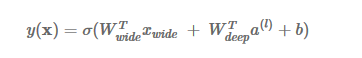 右上的Part_4部分主要包含广告曝光位次 (Position Bias) 及部分离散特征,主要为了提高模型的记忆性,具有更强的刻画能力。Wide和Deep部分结合,得到最终的模型: