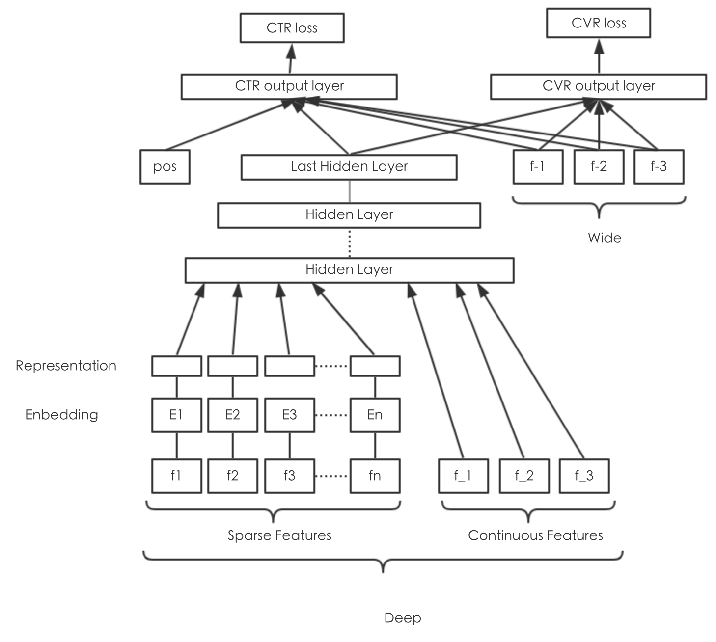 [9] Ma, X., Zhao, L., Huang, G., Wang, Z., Hu, Z., Zhu, X., & Gai, K. (2018). Entire Space Multi-Task Model: An Effective Approach for Estimating Post-Click Conversion Rate. arXiv preprint arXiv:1804.07931.
