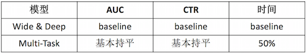 离线训练和线上预估流程减半,性能提升;效果上相对于单模型,效果基本持平: