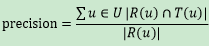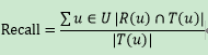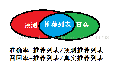令R(u)表示在根据训练数据给用户做出的推荐列表,T(u)表示用户根据测试数据给用户做出的推荐列表,则