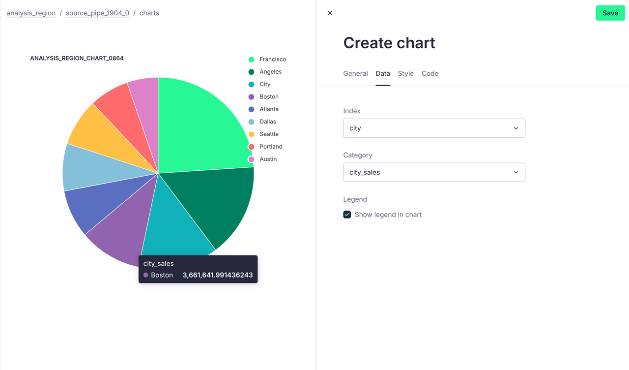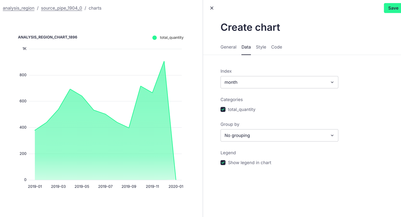 Tinybird 不仅提供数据接口,支持与 Grafana 等可视化平台的集成,还可以进行基本的数据可视化分析。如需了解如何使用其他平台进行可视化,请参考 Tinybird 提供的文档教程[9]。本次我们将使用 Tinybird 自身提供的可视化工具进行场景分析。